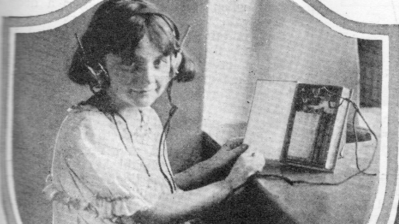 Bilim ve Buluş Derginin Kasım 1924 tarihli yayınlanmış bir önceki fotoğrafı, kulağında kulaklığıyla masa başına gidecek, “kitabını” açmış ders çalışan küçük bir kız çocuğu görülüyor. Ancak bu kitaba alıştığımız ders kitaplarından değil. İçinde “geleceğin eğitim teknolojisi” olan bir radyo bulunuyor.