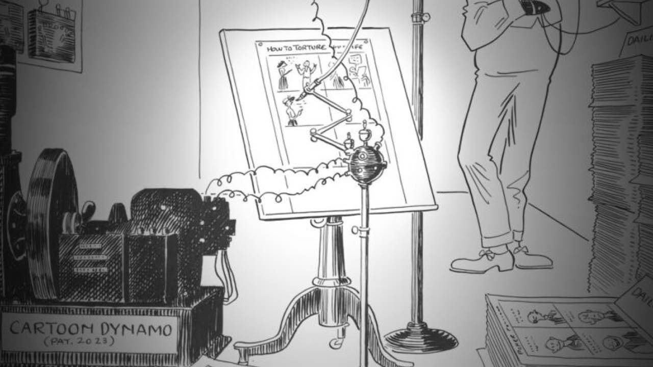 1923’te Webster adlı bir karikatürist, New York World gazetesi için, fikirlerin ürettiği ve bunları otomatik olarak çizgi film haline getiren bir 2023 makinesini tasvir eden komik bir karikatür çizmişti. Karikatürün başlığında, “2023 yılında bütün işlerimiz elektrikle yapılıyor olacak” yazıyordu ve karikatürde de sanatçı kendi halinde otururken bir “fikir dinamosu” onun için tasarımlar yaptı, “karikatür dinamosu” ise çizimleri alır.