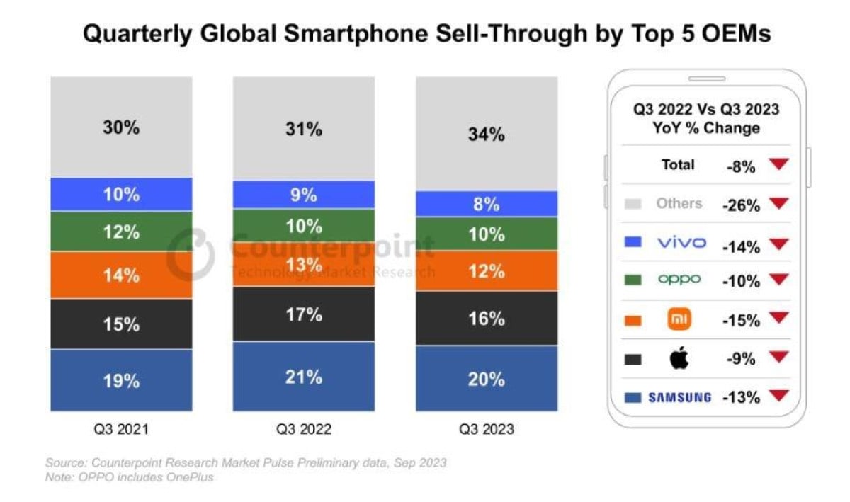 Counterpoint Research bu yılın üçüncü çeyreğine ait akıllı telefon satış rakamlarını paylaştı.