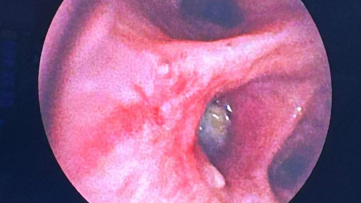 Doç. Erhan Uğurlu’nun muayene ettiği Yurteri’nin hava resimlerini görüntülemek için yapılan fiberoptik bronkoskopi işlemi sırasında beklenmeyen görüntüyle karşılaşıldı.