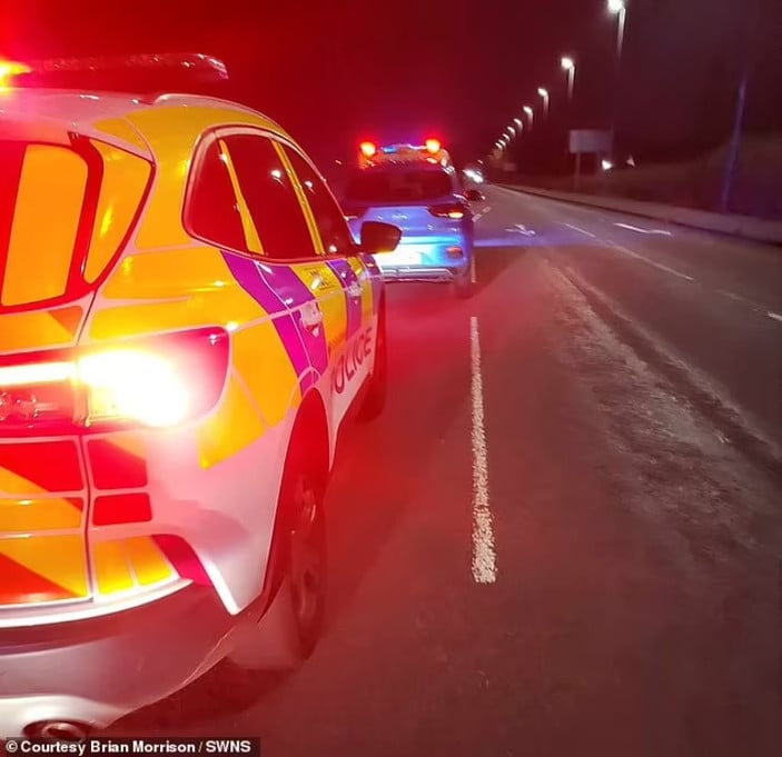 Glasgow’da yaşanan olayın ardından Brian Morrison’ın arabasının polis tarafından durdurulmasının ardından çekilen görüntüler.