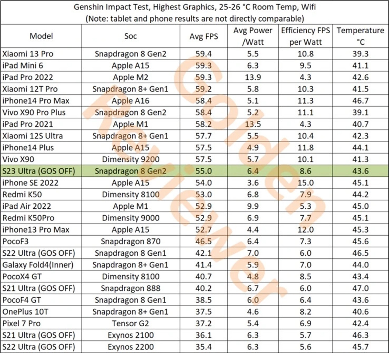 Belki de ilginç olan, diğer Snapdragon 8 Gen 2 destekli cihazlar aynı testte daha iyi performans sergilemektedir. Xiaomi 13 Pro, sürücüleri 59,4 kareyi aşarak yalnızca en yüksek 39,3°C sıcaklığa ulaştı. Geçen yıl Snapdragon 8 Gen 1 Plus çipine sahip diğer Xiaomi üst düzey hatlarında, yayınlanan tabloda görüldüğü gibi, gerçek hayattaki oyun testinde Samsung’un 2023 amiral gemisinden daha iyi performans gösterdi.