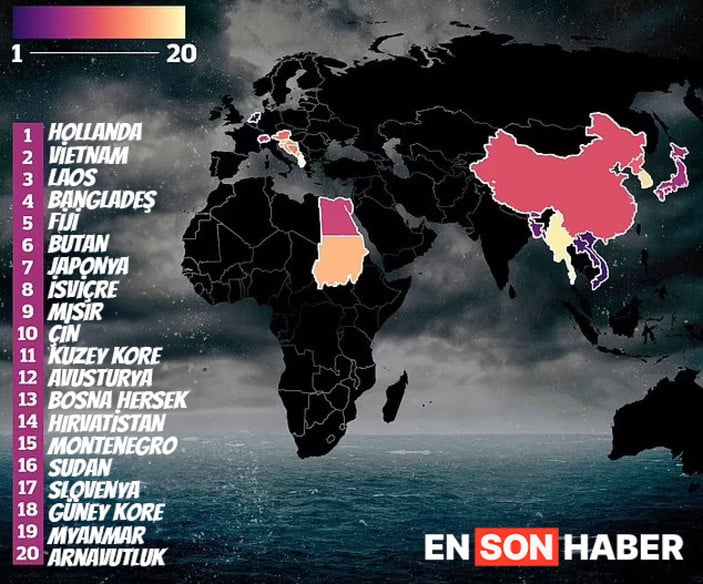 Listenin başında Hollanda’nın yer aldığı ülkeyi Vietnam, Güneydoğu Asya ülkesi Laos, Bangladeş ve Güney Pasifik Okyanusu’ndaki Fiji takip ediyor.