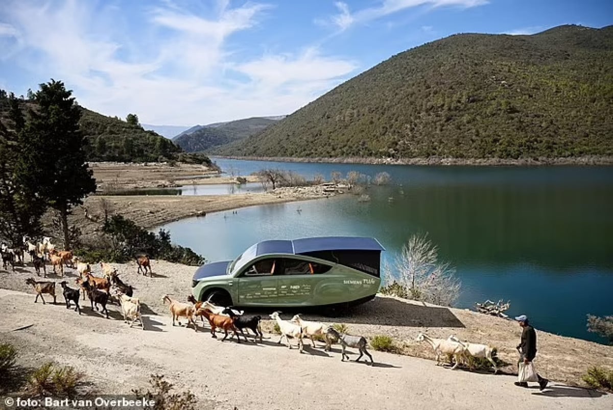 Gücünü yalnızca otomobilin yerleşik güneş panellerinden alan araç, Fas’ın kuzey kıyısı boyunca, Rif dağlarının zorlu yollarından geçerek Sahra’nın kum tepelerine doğru yolculuk yaptı.