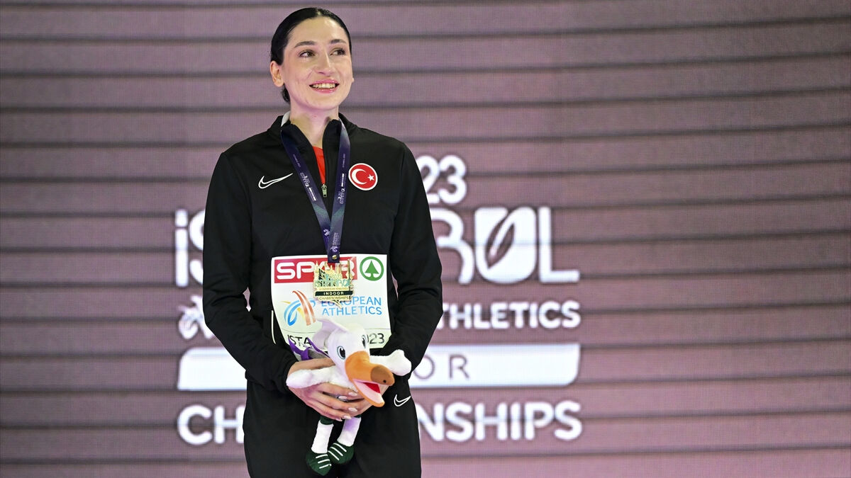 Yarışta 14,31 metrelik atlayışıyla Türkiye rekoruna imza atarak altın madalya kazanan milli atlete madalyasını, Türkiye Atletizm Federasyonu Başkanı Fatih Çintimar verdi.
