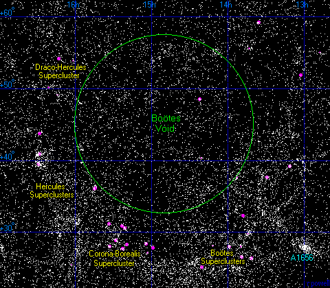 Genel olarak Büyük Hiçbir Şey veya Büyük Boşluk isminde Bootes Boşluğubeklenenden daha az galaksinin bulunduğu gerçek bir uzay alanıdır ve gerçekten de boş olmaya çok yakındır. 250 ila 330 milyon ışıkyılı genişliğiyle bildiğimiz en büyük boşluklardan biridir. Bu alan tüm gözlemlenebilir evrenin çapının yaklaşık yüzde 2’sidir.
